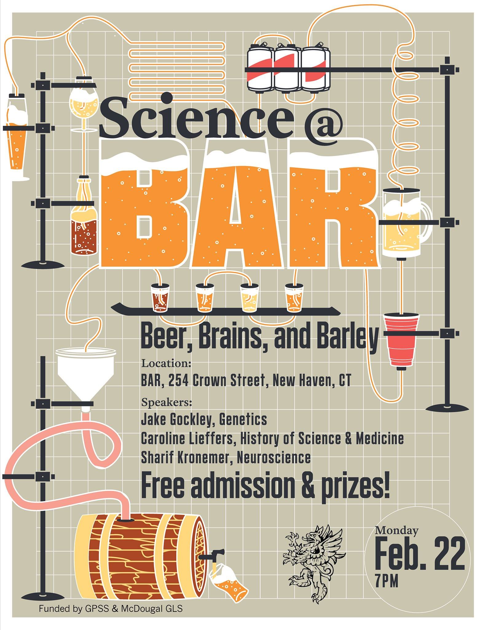 Increased interest in live events by the educational outreach committee led to new outreach initiatives: Science @ Bar and Science@Brewery. The format of these events brings Science to adult audiences in a fun and informal way. We present four fifteen-minute talks about a scientific topic. During the talks, audience members could win themed prizes through jargon bingo cards (ensuring they pay attention) and indulge in drink specials or themed cocktails. All aspects of these talks were workshopped through weekly meetings over several months to ensure complex concepts were easy to understand and jargon, especially those on the bingo cards, were explained. Initially, topics were chosen to reflect the interest of the committee members. They later became integrated with the Yale Journal of Biology and Medicine (a student-run peer-reviewed journal) to coincide with the release of their issues and recorded as a podcast.